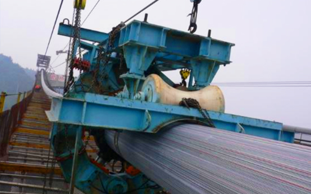 主纜纏絲機、緊纜機(滿足各類主纜直徑),纜索吊、張拉專用設備、吊裝門架、貓道等施工平臺設計制造。