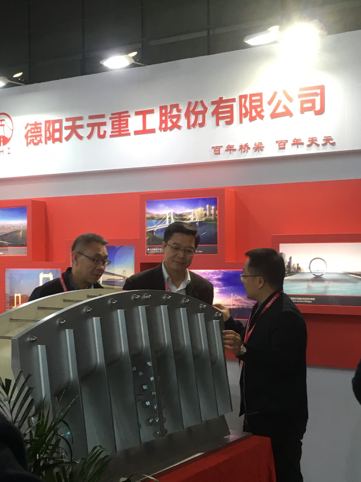 我公司作為重要與會單位,重點參與了改革開放40 年橋梁創新成就展。在本次展會開始前,公司內部進行了認真準備,精心設計了展位布置。展會期間,公司代表團成員與來訪客戶認真互動,介紹公司產品與服務,共同探討橋梁索鞍索夾制造安裝過程中的重點、熱點、難點問題,給客戶留下了極其深刻的印象,為公司樹立了良好的企業形象。
