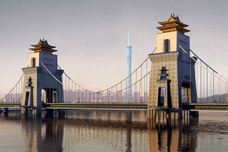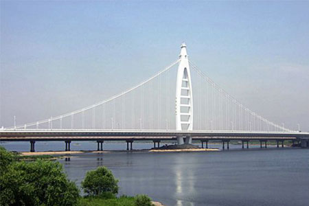 鄭州潮河大橋全長400米,是河南省第一座受力的三塔地錨式懸索橋,分四跨組成,橋面...